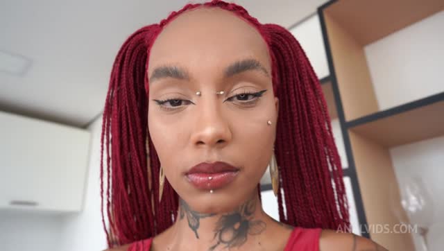 Lara Rouge, sexy Brazilian ebony cutie loves 2 dicks in her ass (Anal, DAP, 0% pussy, foot fetish, ATM, gapes, goth, alt model, 2on1 )