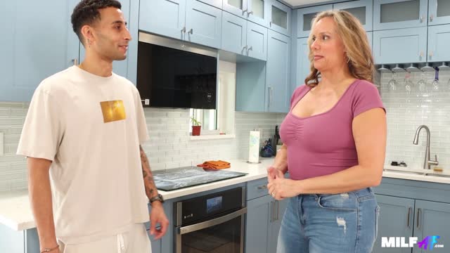 Busty cougar Wendy Raine is amazed by her boyfriend's son's big cock