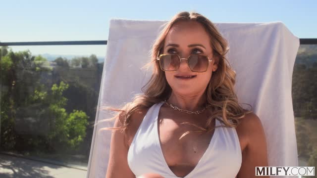 Curvy Mature Syren Rides His Young Cock Poolside